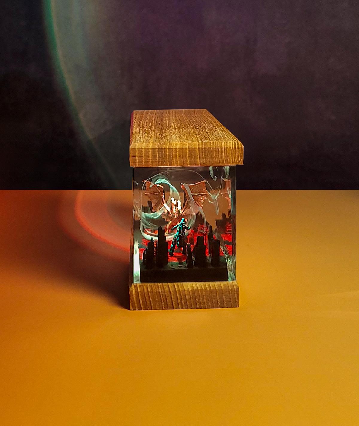Three-Headed Dragon vs Godzilla Resin Lamp