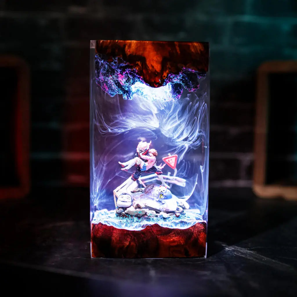 Momo Ayase and Okarun Dandadan Resin Lamp